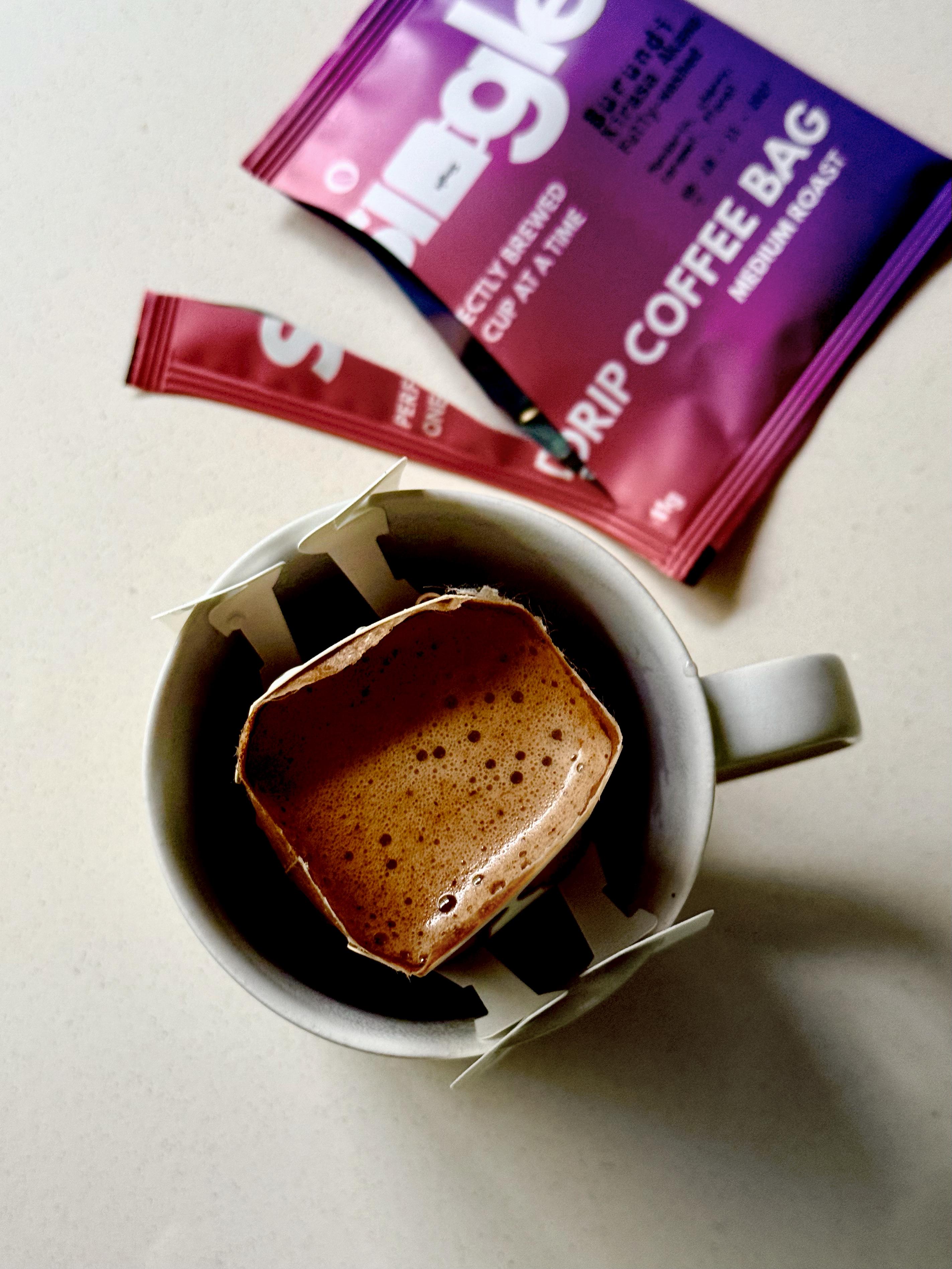 Single-serve steep/filter bags — freshly roasted, nitrogen-flushed, ready in minutes.